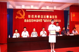 6月30日,在党的九十华诞即将到来之际,我院党委隆重召开纪念建党90周年暨“创先争优”表彰大会。会议由党委副书记、纪委书记徐翠英主持,王建平院长宣读了《关于表彰2011年度先进党组织和先进个人的决定》。院领导班子向在“创先争优”活动中做出突出贡献,受到省高教工委、郑州大学、医院表彰的先进党支部、党小组,优秀共产党员、优秀党务工作者、党风廉政先进个人颁奖。19名同志在徐书记的带领下,面朝党旗庄严宣誓,成为了光荣的共产党员。新党员代表王兵、入党积极分子代表李琦作了典型发言。院党委书记李新华作了重要讲话,号召全院党员牢记党的宗旨、发挥先锋作用,继续深入开展“创先争优”活动和团队文化建设年活动,为党的事业、为医院建设发展做出新的、更大的贡献。