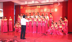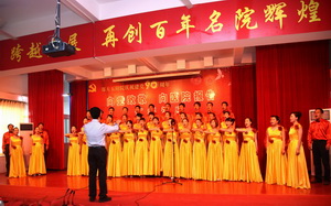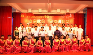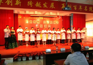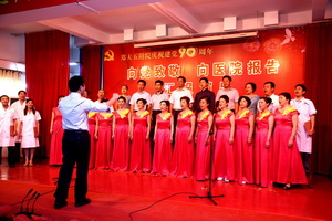 会后,举行了喜庆热烈的“向党致敬,向医院报告”汇报演出。演出由张婧、安乾主持,各党支部、工支会组成7支代表队,用唱响红歌、院歌的方式向党的九十岁生日献礼。神内妇儿代表队用“没有共产党就没有新中国”唱出大家心声;机关代表队一曲“在太行山上”把我们带回激情燃烧的岁月;医技代表队的“祖国慈祥的母亲”深情婉转;内科代表队将“我们走在大路上”演绎的热情豪迈;社区后勤代表队用“歌声与微笑”为共产党、为医院带来深情祝福;外科代表队一曲“革命人永远是年轻”塑造了光荣的党员形象;门诊代表队用“在灿烂阳光下”向党致以最崇高的敬意……全院党员干部职工用激昂的曲调深情回顾90年光辉建党之路,用优美的旋律真诚抒发对党的无限敬仰。诗朗诵“向医院报告”将演出推向高潮,各党支部书记和医生代表、护理人员代表、教学科研代表、基建代表用诗意的语言将各部门工作的亮点、成绩向医院报告,表达了再创百年名院辉煌坚定的信心。全体院领导班子成员齐声高唱院歌《继往开来再创辉煌》,伴随着激昂嘹亮的旋律,全院党员度过了一个难忘的节日。