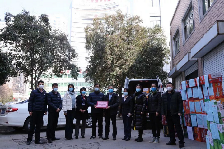 2月13日中午,院党委副书记徐翠英、纪委书记周文平热情接待了由医院肿瘤科郭彦伟主任联系的民革河南省直郑东新区总支委员会,该总支主委张建斌、副主委王志杰和史泉山、二支部副主委郭彦伟以及党员徐申磊、张勇、刘长河、李辉、欧阳建伟等一行向奋战在抗疫一线的郑州大学五附院医务人员捐赠了75箱爱心水果和矿泉水。院工会通过各党支部及时将物资发放到了一线科室。为服务医院抗击疫情大局,节省抗疫一线职工宝贵工作时间,工会工作人员在及时通知各科室尽快领取的同时,牺牲了自己的午休时间,为医院疫情防控科室、急诊科、发热门诊、火车站值班等重点科室进行发放,保证了在有序发放的同时不扎堆聚集。