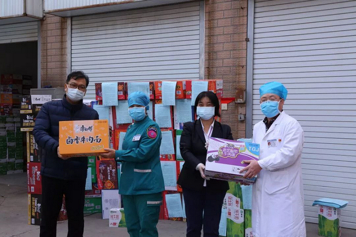 2月12日上午,光大银行为医院职工赠送了方便面、牛奶和火腿肠等生活物资120份。并为驰援武汉的医疗队成员每人邮寄赠送了拉杆箱一个。副院长杨怀玉热情接待了光大银行蔡晓峰行长一行,并对他们由衷地表示感谢。医院工会工作人员第一时间将上述物资进行了及时分发。