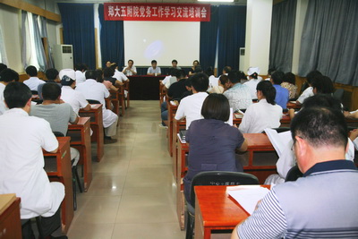 8月6日下午,我院在门诊五楼学术报告厅举行了党务工作经验交流与知识培训。党支部书记闫建华和党办主任郭芹分别从如何做好党支部工作和党务工作基本知识的角度进行了大会交流发言和辅导培训。党委书记李新华、院长王建平、党委副书记兼纪委书记徐翠英、副院长王新军、胡慧华出席了会议,会议由副书记徐翠英主持,医院所属12个党支部的支部书记、支部委员、党小组长和党群部门的同志80余人参加了会议。