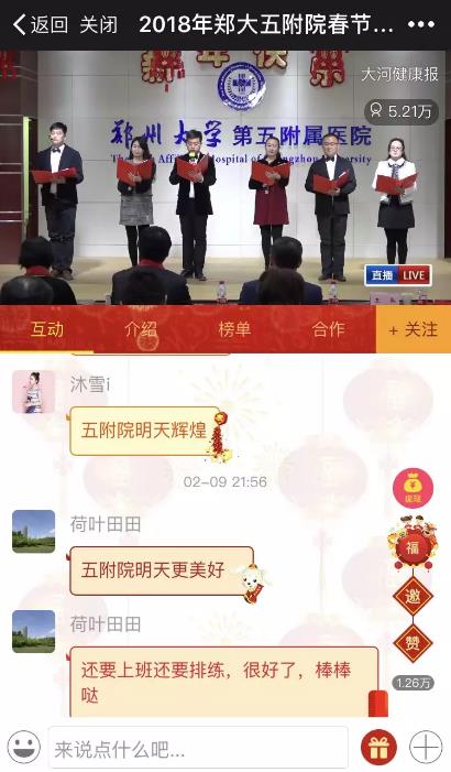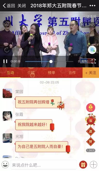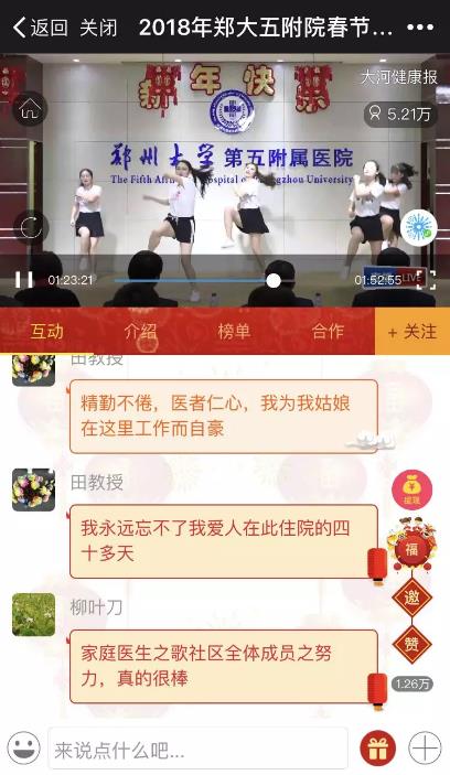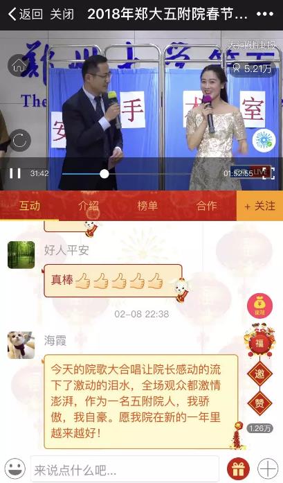 郑州大学五附院新春联欢晚会首次微信直播火爆异常。