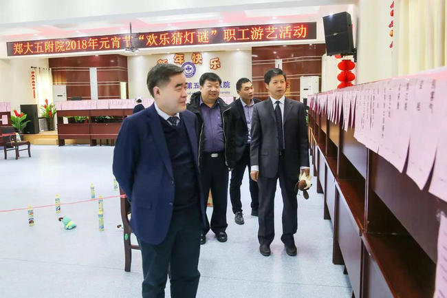 载着新年喜庆的气氛,我们迎来了一年一度的元宵佳节。3月2日下午3点郑州大学五附院工会在门诊五楼会议室举办了元宵节“欢乐猜灯谜”职工游艺活动。院党委书记王新军,院长郑鹏远,工会主席朱光亲临现场。