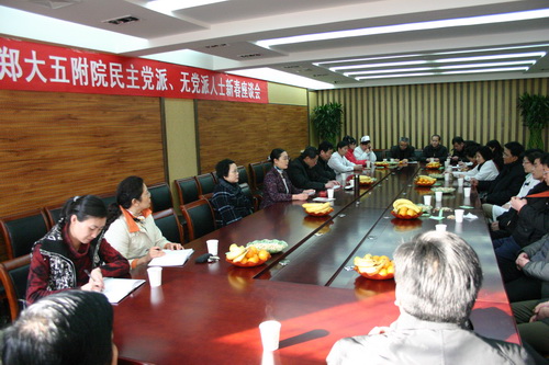 1月7日下午,我院召开2011年民主党派、无党派人士新春座谈会。会议由党委副书记徐翠英主持,党委书记李新华做了重要讲话。工会主席陈琳、副院长乔保忠以及医院所属11个党支部的支部书记、相关职能科室负责人出席了会议,医院在职人员中的民主党派、副高以上的无党派人士30余人参加了会议。座谈会上,与会人员畅所欲言,回顾了医院一年来所取得的成就和民主党派自身的建设,并就新一年医院的建设发展提出了许多中肯的意见和建议。
