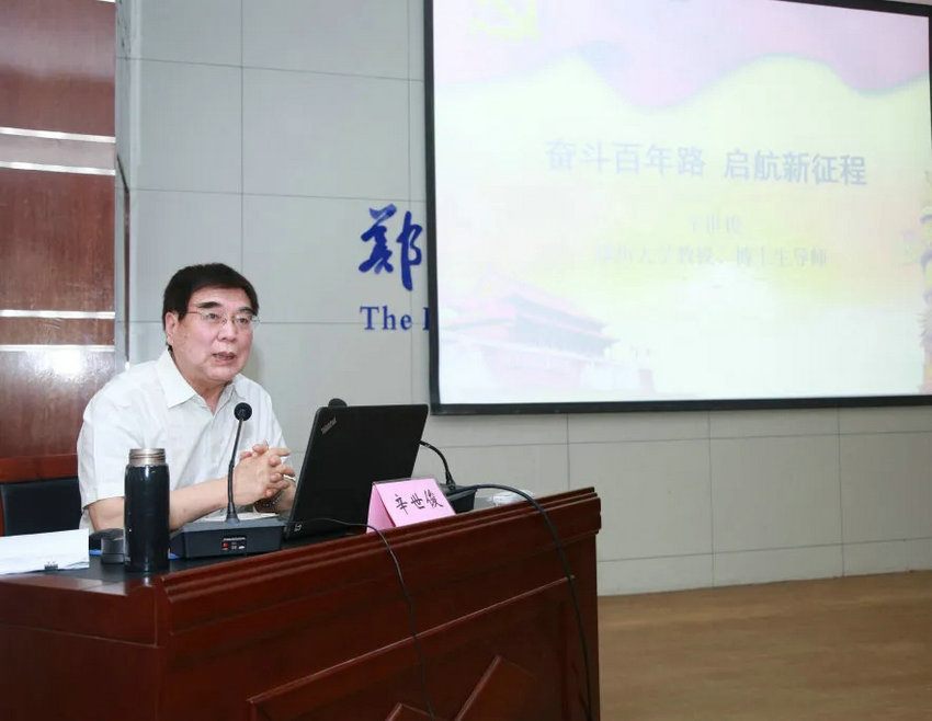辛世俊教授以“奋斗百年路 启航新征程”为题,从开天辟地:中国共产党在新民主主义革命时期完成救国大业;改天换地:中国共产党在社会主义革命和建设时期完成兴国大业;翻天覆地:中国共产党在改革开放和社会主义现代化建设新时期推进富国大业;惊天动地:中国共产党在中国特色社会主义新时代推进并将在本世纪中叶实现强国大业四个方面,对中国共产党百年奋斗历程和历史功绩进行了系统讲解和生动阐述。
