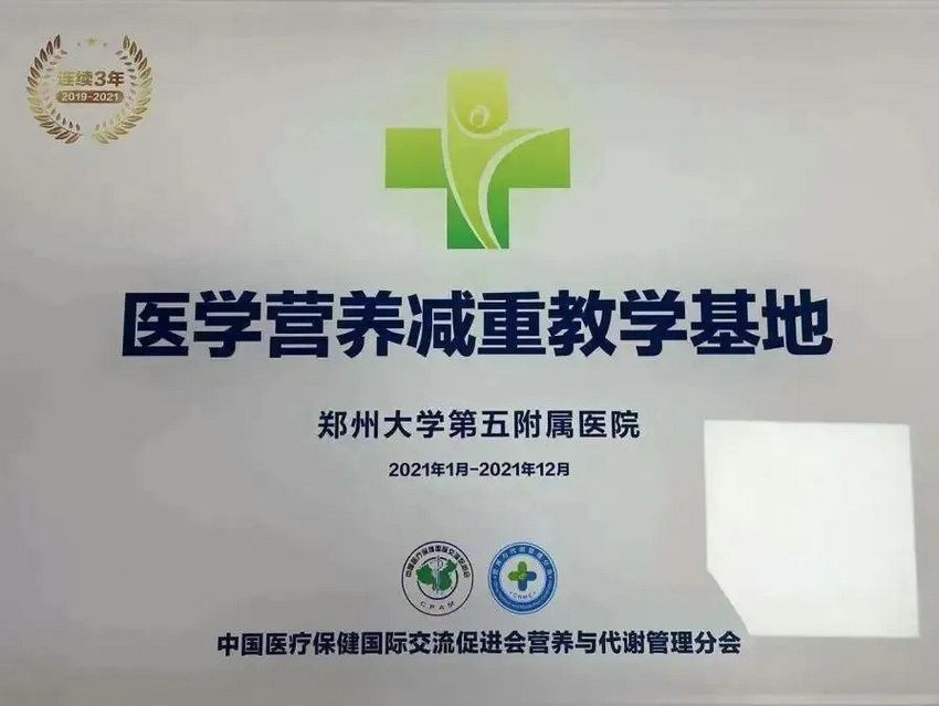 郑州大学五附院是中国医疗保健国际交流促进会“医学营养减重教学基地”挂牌单位。医学营养减重团队由临床营养科与内分泌科、消化内科、心血管科、心肺康复科、肾病内科、妇科、产科、中医科、体检科等多学科专家、营养医师、营养师、健康管理师和体重管理师组成,团队阵容强大,为减重朋友提供更精准个性化的减重干预方案。