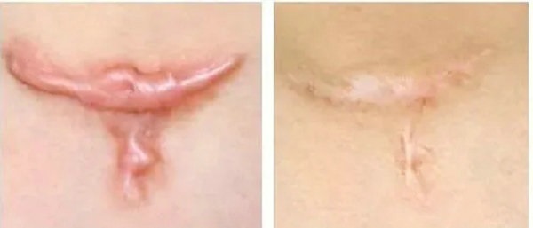 2.先行瘢痕切除术,待切口愈合后7-10天敷贴治治疗,这样所需敷贴疗程少且不易复发。