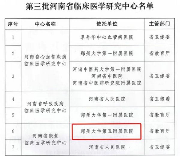 喜讯 | 郑州大学第五附属医院获批河南省康复临床医学研究中心