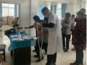 上午的义诊活动结束后,专家们来不及休息,便整理装备奔赴下一个任务点。还未等专家们到来,很多群众就闻讯赶来,有序的排列成队。大家快速在整理好设备后,筛查诊疗工作再次开始。随行的研究生在记录信息的同时也充当志愿者,时不时起身搀扶年老不便的患者,得到了在场就诊群众的赞扬。一天下来,接受义诊的居民达200余名。