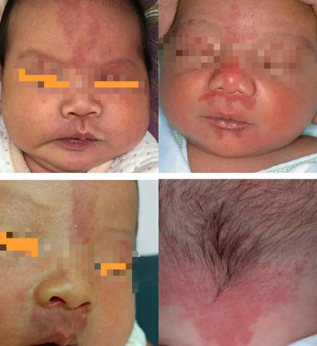 如果长在这些部位的红胎记如额头中间呈V字形的红斑,枕后部位分布,眼睑或人中部位的红斑,被称为“鲑鱼斑”,一般是一种长在特殊部位的“鲜红斑痣”(如图1)。