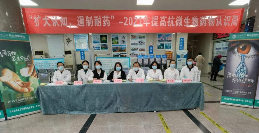 为积极应对微生物耐药带来的挑战,提高社会公众对耐药的认识水平,遏制微生物耐药发展与蔓延,国家卫生健康委医政医管局和农业农村部畜牧兽医局决定在11月18日-24日组织开展“2021年提高抗微生物药物认识周”活动。郑州大学五附院药学部积极响应号召,于2021年11月22日开展“扩大认知,遏制耐药——2021年提高抗微生物药物认识周”活动,积极向广大群众和医务工作者宣传抗微生物药物合理应用理念。