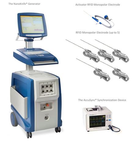 郑州大学第五附属医院肝胆胰腺外科主任李晓勇教授介绍,纳米刀是一种全新的肿瘤消融治疗技术,它是通过释放高压电脉冲在肿瘤细胞膜上形成纳米级不可逆性穿孔,破坏细胞内平衡,使细胞快速凋亡,进而,体内吞噬细胞将细胞碎片吞噬掉,治疗区域逐步被正常组织所取代。与常规的消融手段(射频、微波、HIFU等)不同,它不借助与热损伤或者冷损伤,所以,在围手术期安全性方面,相比射频消融、HIFU刀等消融手段,纳米刀有显著的优势。截止到2012年底,全球已有一百多个大型医院肿瘤中心开展了纳米刀技术,总治疗例数已超过6000例。2015年6月,中国FDA批准该技术应用于临床肿瘤的消融治疗。
