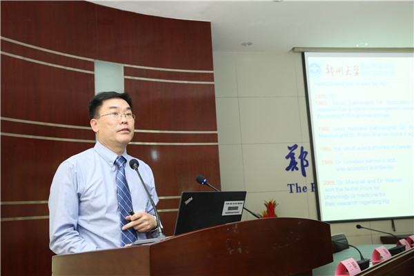 4月9日,2016河南省幽门螺杆菌微生态与消化系统疾病新进展学术研讨会在郑州大学五附院隆重举行。郑州大学一附院李继昌教授担任大会主席并致辞,郑州大学五附院院长、消化内科专家郑鹏远教授为大家解读了“京都共识”;汤有才教授讲授了儿童幽门螺杆菌感染的相关问题;夏兴洲教授为与会者介绍了2016年河南省幽门螺杆菌学组活动内容。到会专家还有中华医学会消化学分会委员李白云教授,河南省人民医院消化内科丁松泽教授等。
