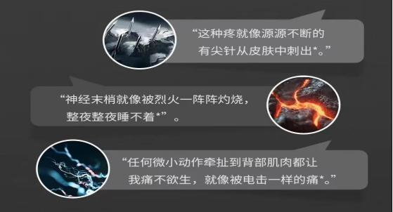 带状疱疹并发症:常见的是带状疱疹后遗神经痛,可被定义为皮疹出现后至少持续1个月或3个月、6个月的疼痛。我国带状疱疹后遗神经痛发病率占带状疱疹患者的5%-30%。因此,带状疱疹后遗神经痛目前仍是世界级的疼痛难题,有“不死的癌症”之称。