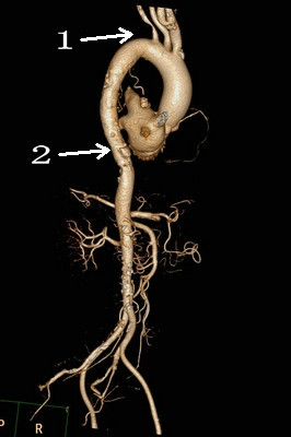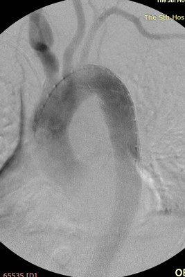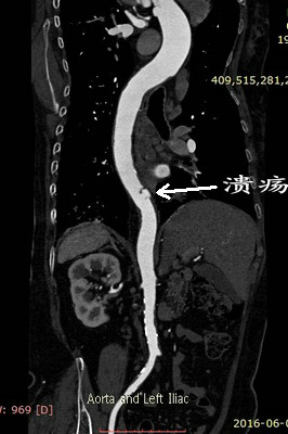 图1:左侧锁骨下动脉重度狭窄 图2:主动脉透壁性溃疡