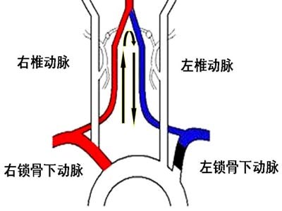 锁骨下动脉狭窄导致椎动脉盗血示意图