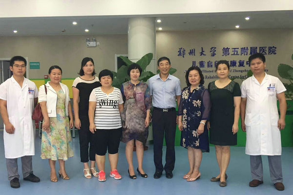 2016.8.19日上午10点,河南省残联康复部调研员钱岩,姚美玲教授,主任科员宋丹丹、郭艳霞,智障科科长李华一行来到郑州大学五附院,就残联救助项目进行督导,王少亭副院长、儿童康复医学科李恩耀主任、赵鹏举副主任陪同。