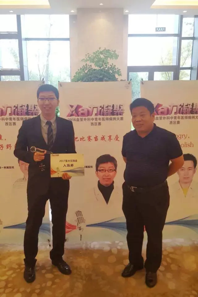 2016年9月16日,在第四届中国西部血管大会上传来喜讯,郑州大学五附院血管外科青年医师安乾在“2016年度‘ⅹa力凝聚’中青年医师病例大赛”中,凭借自身优异表现,得到了现场评委和观众的一致好评,最后以90.4的高分排名第一,顺利折冠,晋级2016年“中国血管论坛(CEC)”全国决赛,并获得了2017年“亚太血管交流会”的参会资格。