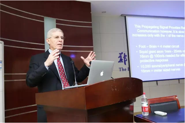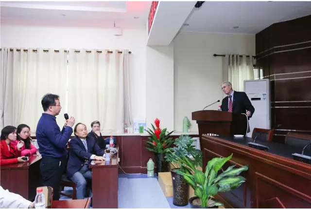 另一位AAPMR前主席Dr. Robert Weber为在场医务人员呈现了题为Use of Electrodiagnosis for Prognosis And Rehabilitation of Nerve Injuries的精彩讲座。Dr. Robert Weber从肌电图的电生理到肌电图在临床中的应用进行了详细地讲解,他提及到肌电图不仅是测试手段,在临床中对神经系统疾病的诊断及康复预后的判断均有指导性的意义。讲解结束后,医院肌电图室郝道剑老师及郑州大学康复医院副院长李哲教授分别用汉语及英语向Dr Weber 提出了自己的问题,而Dr. Robert Weber也就此给出了十分精彩的回答。