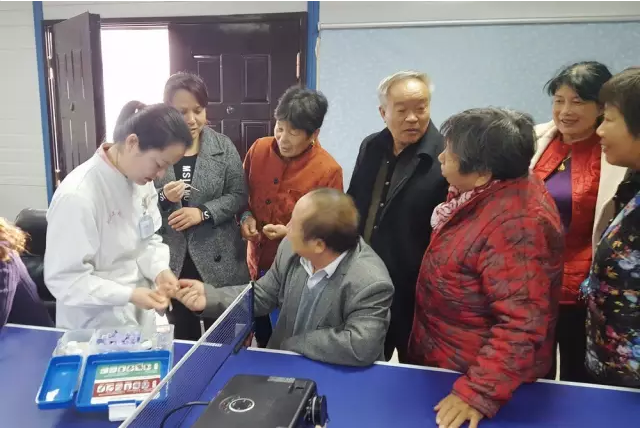 讲座结束后,现场免费为大家测血糖,量血压,发放健康知识手册,接受患者及家属咨询。本次义诊活动获得圆满成功,获得社区百姓的一致好评!今后,内分泌科二病区还将继续坚持为社区卫生事业服务,定期到各地举行义诊活动,扩大医院及科室知名度和影响力,使更多的百姓受益。