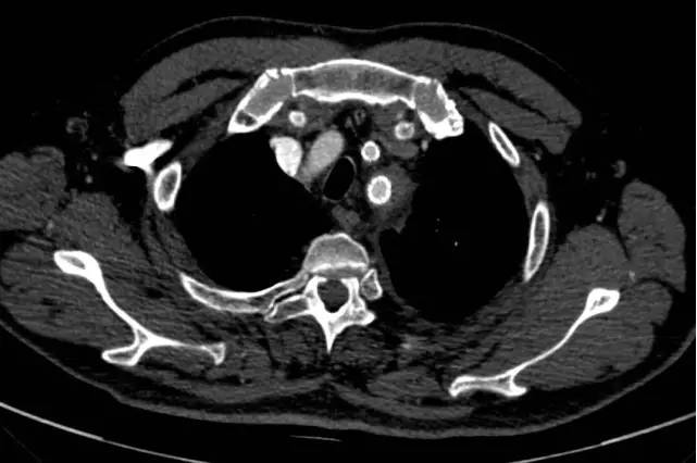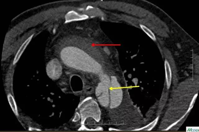 120送来一位突发胸痛患者,经初诊不排除急性心肌梗死或主动脉夹层,同时请心内科及血管外科会诊。会同心内科值班医师,一行3人赶到急诊科,看的一位中年男性患者,面容痛苦的躺在病床上,大汗淋漓,坐卧不安,自诉胸背部疼痛难忍。测量血压高达180/110mmHg,心率100次/分!心电图仅提升T波改变。心内科医师结合病情及检查结果,排除了急性心肌梗死。崔文军副主任医师分析:该患者为中年男性,体型偏胖,长期高血压病史,从未服用降压药物,发病前大量饮酒,突发胸背部撕裂样疼痛,高度怀疑主动脉夹层!