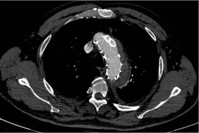 这时王兵教授也赶到了病房,亲自查看患者,详细询问发病情况,仔细为患者体格检查。他带领大家仔细研读CTA结果:患者主动脉夹层诊断明确,目前,主动脉夹层首选腔内治疗,但患者主动脉破口紧贴左侧锁骨下动脉,并逆撕至锁骨下动脉,做为支架近端锚定区的升主动脉及主动脉弓全程壁间血肿。该类患者急性期不宜行支架植入,因为近端主动脉的血肿及水肿严重,植入的支架极易损伤血管内膜,导致新的夹层发生,一旦出现将导致手术失败,不仅增加再次手术的风险,死亡风险也大大增加!如果选择腔内治疗,必须等病人度过急性期,并动态行CTA检查,直至升主动脉及主动脉弓部血肿吸收后,方有机会进行支架植入。但该方案等待时间长,在等待过程中随时有主动脉夹层破裂出血导致死亡风险!另外的方案就是选择急诊开胸手术,行主动脉全弓人工血管置换术,但该术式创伤大,并发症相对较多,同时亦有较高的围手术期死亡率。