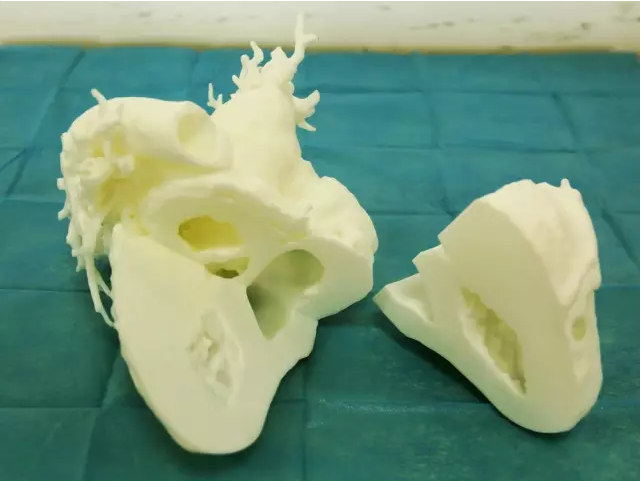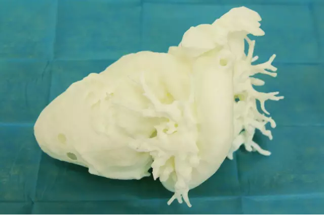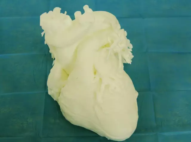 心脏外科高兴才主任及其团队经认真研究决定为其在术前进行一个“特殊”的检查。即先利用患者CT造影信息构建心脏内部立体解剖结构,再应用3D打印技术以1:1的比列,打印出患者的一个心脏模型。通过这一模型清晰地显示出患者心脏内左室流出道梗阻部位及肥厚程度,让医师们一目了然,为手术顺利的实施提供了有力的支持。