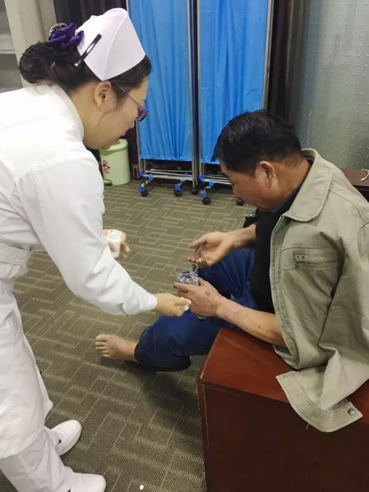消化内科三病区护士王丹给旅客发药