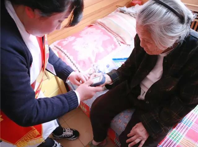 家住郑州大学五附院隔壁社区的张奶奶今年已经103岁,是这次体检年龄最大的百岁老人。医疗服务队为张奶奶进行了血糖、血压、心电图测定以及西医听诊和中医把脉,张奶奶仅血压稍高,其他指标均比较正常。服务队护士叮嘱她注意身体,每天测量血压,有不适尽早就医。