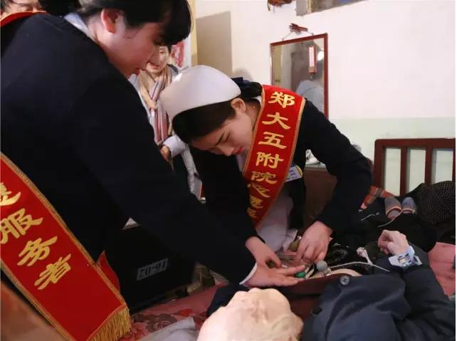 1月18日,为进一步弘扬中华民族尊老、敬老、爱老的传统美德,在建中街街道党工委副书记李轶韬的组织下,郑州大学五附院医疗协作办公室、宣传科的工作人员与内分泌科、康复科、急诊科等科室专家组成"关爱百岁老人"便民医疗服务队,来到辖区为5位百岁老人进行个性化免费体检,并对老人的日常生活护理等进行指导,在寒冬腊月给百岁老人带来温暖。