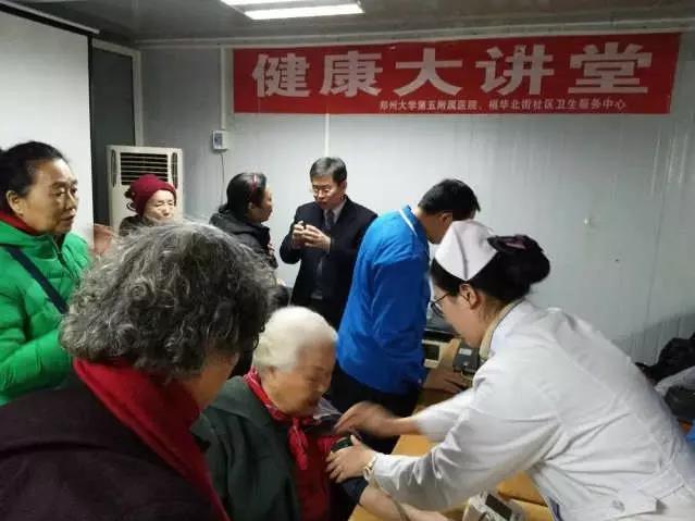 新年伊始,春节假后上班第二天(2月4日)下午3点,郑州大学五附院神经内科一病区主任何远宏教授带领科室人员来到二七区福华街社区,给社区群众讲了一堂关于脑卒中(脑血管病)防治知识的健康讲座。讲解非常贴近群众的日常生活实际,生动易懂,多次受到大家自发的鼓掌欢迎,气氛热烈。讲座结束后大家争相咨询何主任,他都耐心一一解答;护士小廖热情给大家测量血压。这次进社区健康讲座与义诊,深受群众的欢迎,他们表示很期待何教授下次再来讲座义诊,何主任欣然同意。这次讲座与义诊也是医院疾病控制与社区管理科程智科长和福华街社区卫生服务中心朱雪萍副主任等医生为社区群众送健康、贴心服务周围群众而精心准备的健康大讲堂内容之一。