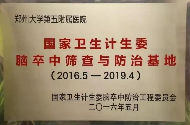 为此,国家卫计委特别成立了脑卒中防治工程委员会。郑州大学五附院脑卒中诊断治疗水平在省内处于先进行列,也受到国家卫计委脑卒中防治工程委员会的肯定,被授予国家卫生计生委脑卒中筛查与防治基地和高级卒中中心。医院副院长、血管外科专家王兵教授担任国家卫计委脑卒中工程专家委员会常委。