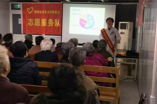 在学雷锋活动月暨三八妇女节来临之际,郑州大学五附院派出了以内分泌科一病区董瑞鸿主任医师为首的志愿者服务队,来到福华北街社区卫生服务中心,为150余名社区居民送上了一堂精彩的防治糖尿病知识健康讲座。
