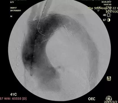 手术设计巧妙,过程顺利,王兵教授主刀,崔文军副主任等医师密切配合,整个手术过程仅耗时2小时。复查造影显示主动脉支架位置良好,破口封堵满意,无内漏,左锁骨下动脉支架通畅,无脑梗塞、肢体及内脏缺血等并发症的发生。整个手术过程中,胡强夫教授带领麻醉团队严格控制血压、心率水平,为手术保驾护航,术后在施敏护士长带领的护理团队精心的护理下,患者恢复良好。