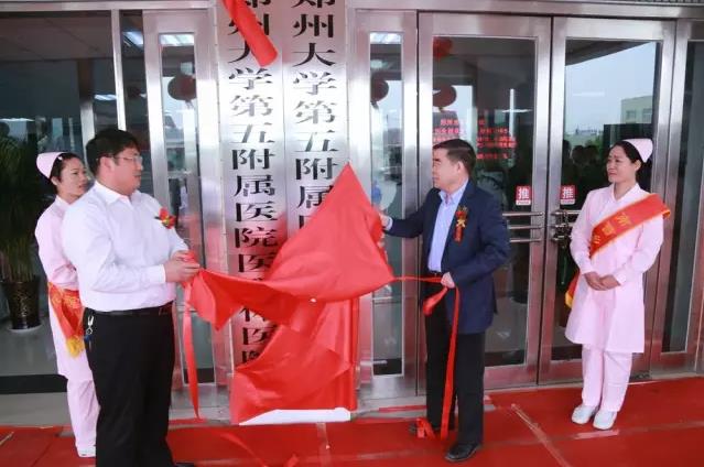 上午10时,郑州大学第五附属医院医联体医院暨康复基地揭牌仪式在南曹乡卫生院隆重举行。郑州大学五附院院长郑鹏远、工会主席朱光,管城回族区南曹乡党委书记王传胜、管城回族区卫计委主任李蓉、南曹乡副乡长刘明明、管城回族区卫计委副主任肖仁义等领导出席了揭牌仪式。