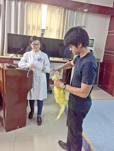 来院之后,医院相关管理科室立刻积极组织留学实习生入科前培训。先后由科教科、医务科、医院感染管理科、手术部分别对留学实习生进行规章制度、医德医风、院内感染自我防护等方面的培训,整个岗前培训全程使用英文教学。