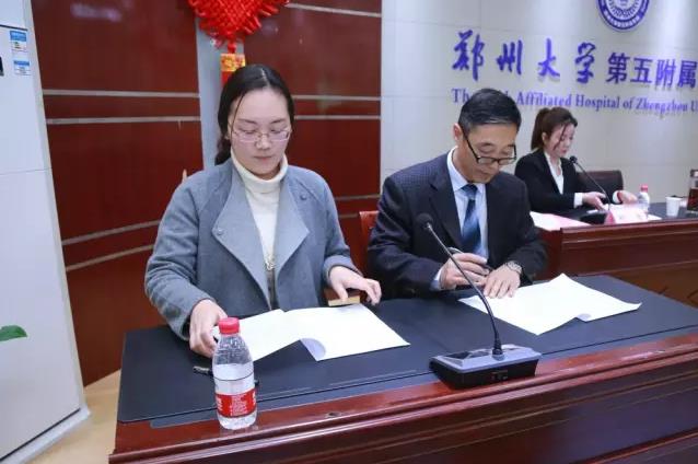 医院王少亭副院长和二七区教体局孙志欣副局长签订郑州市二七区2017年高招体检工作责任书