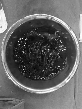 王兵教授主刀、崔文军副主任、吴斐、安乾、司江涛等医师紧密配合,在手术麻醉科胡强夫主任团体的保驾护航下,手术成功实施。术中小心翼翼的切开皮肤、皮下组织,分离出左颈总及颈内外动脉起始段,探查瘤体巨大,虽然“敌人”近在咫尺之间,但医生们仍不能贸然行动,于是采取最稳妥的方案。先从患者左颈总动脉穿刺,反复尝试顺利将导丝引入左颈内动脉远端,并成功植入2枚覆膜支架,先行封堵动脉瘤破口,造影明确无造影剂外渗后切开假性动脉瘤体,取出大量混合性血栓。