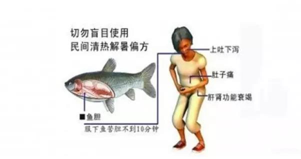 民间有服用鱼胆以清热、明目的习俗,因此常有人受误导而发生中毒,鱼胆中含有较多的毒性成分,过量摄入会造成毒性物质对脏器尤其是肝脏、肾脏等器官的损害,严重威胁患者的生命安全。