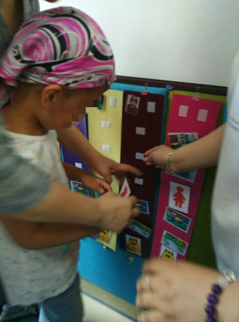 配对照片,找自己的时间表,依次取任务卡,放下任务卡。早会开始了,我学习向老师同学握手问好,学习举手表达需要。
