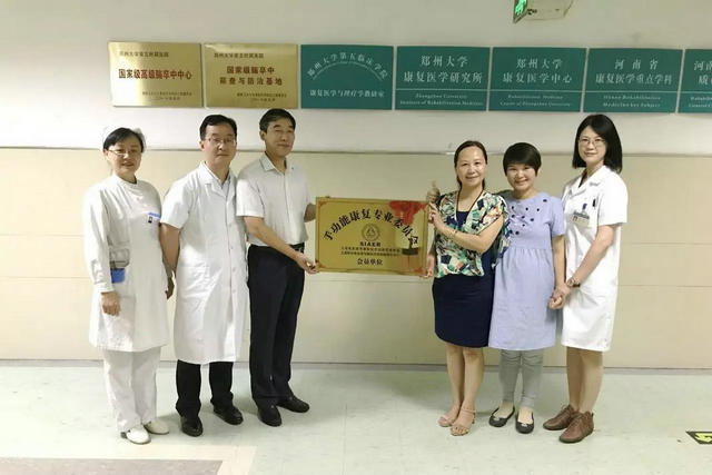 当日上午,贾杰教授还在郑州大学五附院副院长、郑州大学康复医院院长王少亭,郑州大学康复医院常务副院长郭钢花、副院长李哲、董安琴的陪同下参观了康复医学科,并亲手赠予“手功能康复专业委员会”牌匾。郑州大学康复医院(郑州大学五附院康复医学部)作为手功能康复专委会第80位会员单位,将会与复旦大学华山医院共建手康复的学术和科研领域的合作平台,并大力推广和发展河南省的手功能康复事业。
