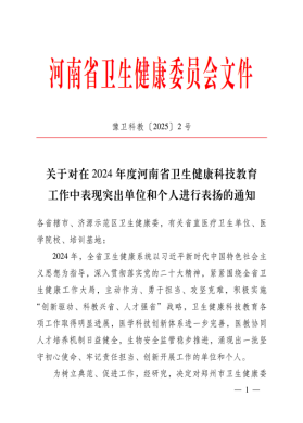 - 2025-03-10▪ 我院荣获 “2024年度全省卫生健康科技教育工作表现突出单位”
