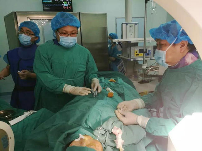 神经外科一病区寿记新教授多次组织科室病例讨论,认为患者年龄大、体质弱,开颅手术治疗风险较大,根据患者病情及家属意愿决定进行个体化治疗,即微创治疗——微球囊压迫术治疗三叉神经痛。