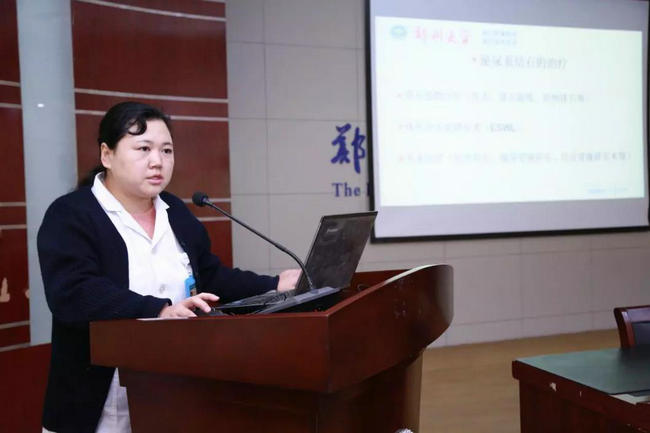 李燕护师以“体外冲击波碎石术的浅析”为题,就结石的发病机理、体外冲击波碎石术的适应症及禁忌症、碎石过程及疗效向大家做了生动讲解。此外看,李燕护士特别介绍了碎石术后的注意事项和排石小窍门,使台下听众感到获益颇丰。