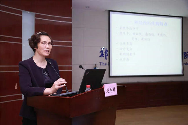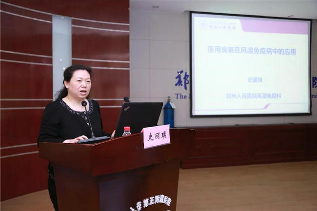 ▲ 郑州大学五附院臭氧治疗室主任、神经内科三病区副主任赵幸娟博士汇报了《臭氧在神经内科的应用》让与会人员受益匪浅