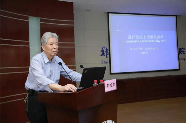 ▲ 郑州大学五附院特聘专家李建章教授向大家分享了《进行性核上性眼肌麻痹》,赢得了满堂喝彩与尊敬。