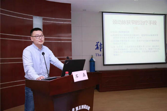 ▲ 郑州大学五附院神经内科三病区副主任石磊博士分享了《CAS术后血流动力学研究进展》。