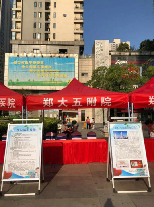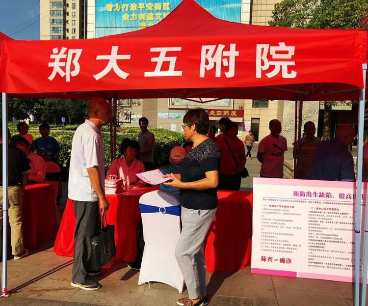 9月12日是全国出生缺陷预防宣传日,为进一步做好出生缺陷防控工作,宣传普及优生优育知识,9月11日上午,由郑州市二七区卫生及计划生育委员会主办,郑州大学五附院等8家助产医疗机构以及社会公益组织等多家部门、机构参与的以“防治出生缺陷,助力健康扶贫”为主题的大型宣传活动在二七区升龙广场举行。郑州大学五附院积极响应上级部门号召,对免费开展出生缺陷产前筛查和新生儿疾病筛查项目大力宣传,力争把这项利国利民的民生实事贯彻落实到位。