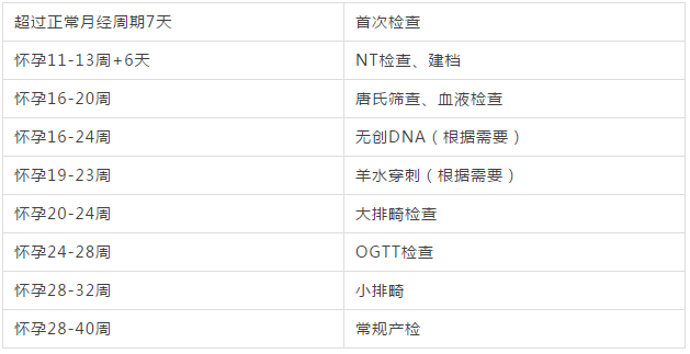 产前检查时间表: