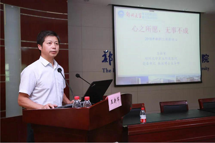 郑鹏远院长代表院领导班子及全体职工对新员工的到来表示了热烈的欢迎和祝贺。他首先简要介绍了医院的总体情况,分析了医院发展面临的机遇和挑战。其次就“提高综合素质、爱岗敬业和保持良好心态”这三个方面做了详细阐述,与在座的新员工畅谈了励志成才的人生启示,分享了做人做事的经验感悟。郑院长指出,建设一流医院,需要一流人才,医院的人才来源于青年的成长。作为新一代郑州大学五附院人,要有广阔的胸怀和视野,紧跟时代脉搏,从自身做起,加强学习,脚踏实地,牢记使命,努力使自己尽快成长,一步步扎实前行,为医院的发展助力。